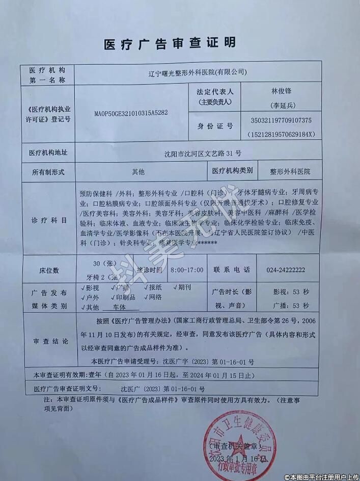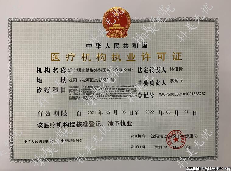 机构名称:辽宁曙光整形外科医院(有限公司)