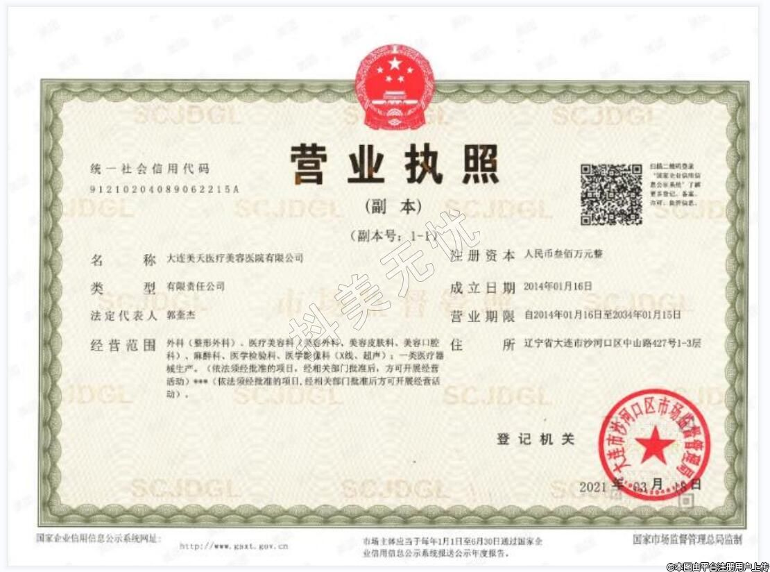 医疗机构名称:大连美天医疗美容医院有限公司