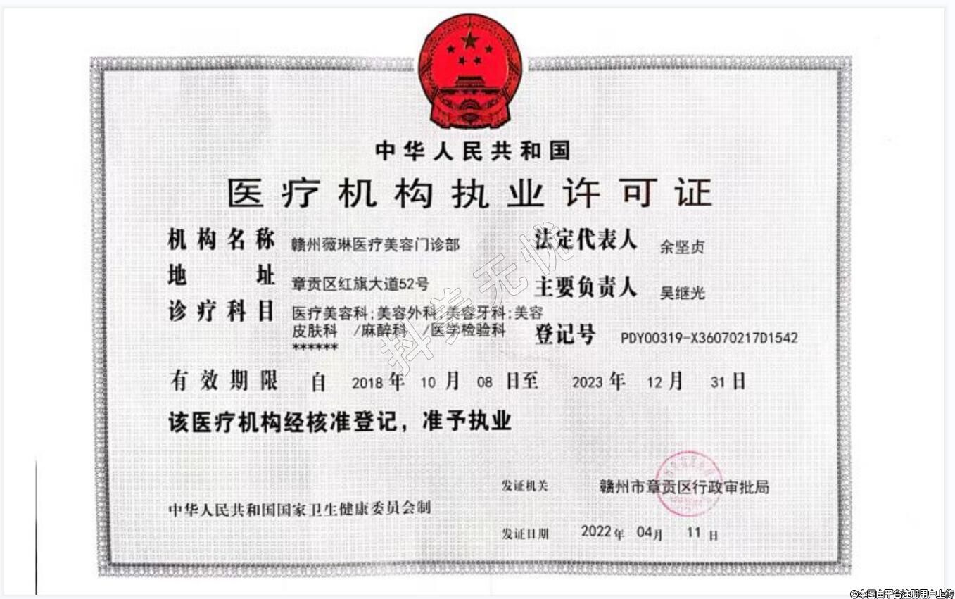 机构名称:赣州薇琳医疗美容门诊部