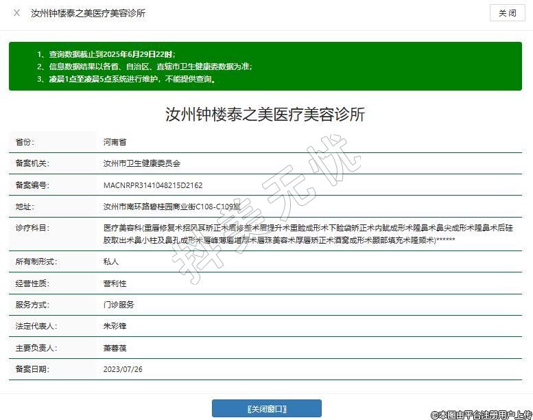 汝州泰之美医疗美容诊所成立于2023年07月05日,是一家正规的、靠谱的医美机构。诊所位于河南省平顶山市汝州市南环路碧桂园商业c108 - c109室,交通便利,环境优美。汝州泰之美医疗美容诊所拥有丰富的经验和专业的医生团队,确保各项诊疗项目能让顾客获得满意的效果。而且收费合理、透明,让顾客可以放心消费。