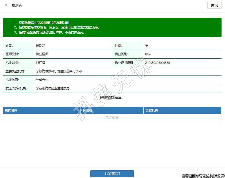 姓名:易刘涵性别:男医师级别:执业医师执业类别:临床执业地点:浙江省执业证书编码:210330205000336主要执业机构:宁波海曙雅韩宁悦医疗美容门诊部执业范围:外科专业发证(批准)机关:宁波市海曙区卫生健康局