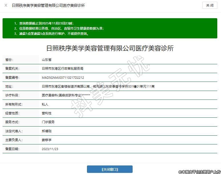 日照秩序美学医疗美容诊所成立于2023年,位于日照市东港区秦楼街道安泰壹号学府001幢01单元111商,是经卫生部门批准设立的正规医疗美容机构。诊所以“秩序美学”为核心服务理念,注重诊疗流程的规范性与客户体验的舒适性,致力于为爱美者提供安全、透明的医疗美容服务。