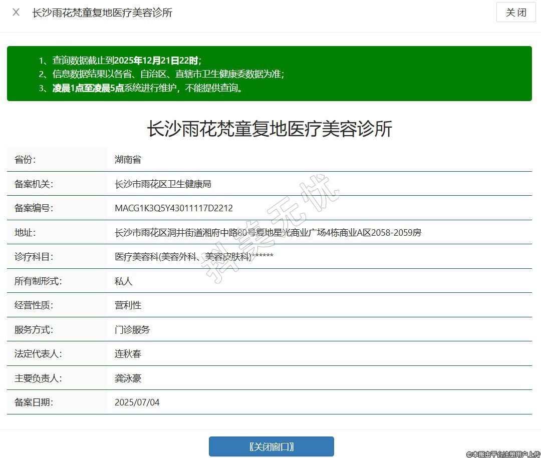长沙梵童复地医疗美容诊所成立于2023年,位于长沙市雨花区洞井街道区湘府中路80号复地星光商业广场公寓1-3栋,是经卫生部门批准设立的正规医疗美容机构。诊所专注于为顾客提供安全、合规的医疗美容服务,涵盖皮肤护理、注射美容及生活美容等项目,始终以专业医疗标准为核心,配备标准化诊疗环境和贴心服务体系。