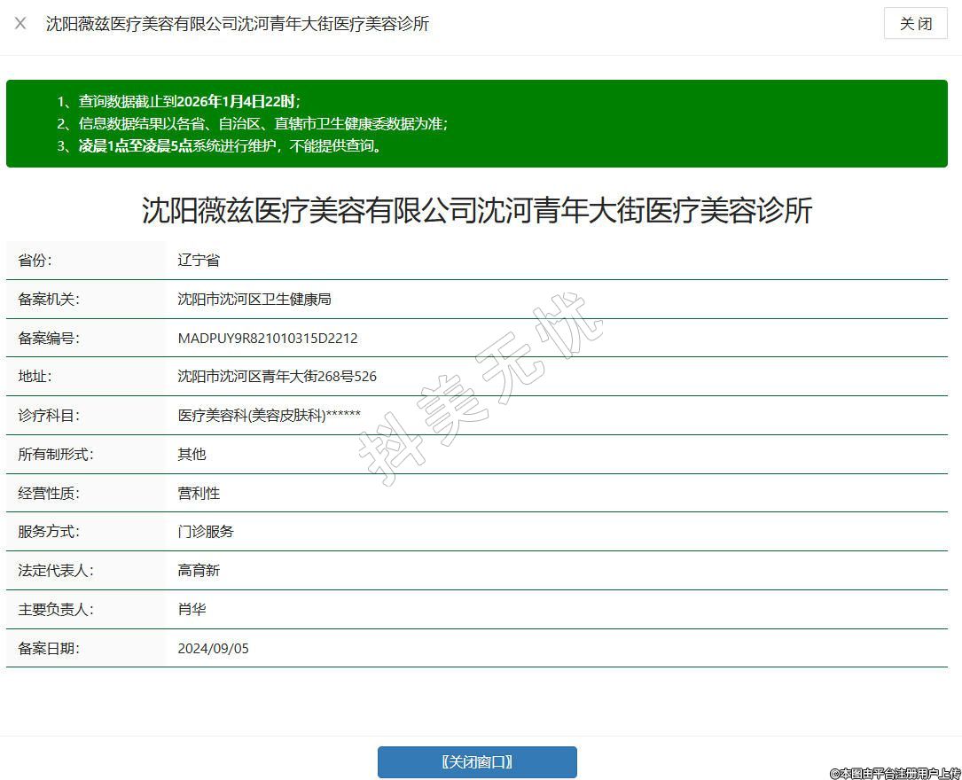 沈阳薇兹医疗美容诊所2024年创建,位于沈阳市沈河区青年大街268号526,是沈阳薇兹医疗美容有限公司旗下机构。诊所可开展皮肤年轻化、注射美容、眼部整形等医美项目,同时提供保健食品、第二类医疗器械、日用品、化妆品等多品类销售服务,配备专业医护人员,能为求美者提供相关美容及配套服务支持。