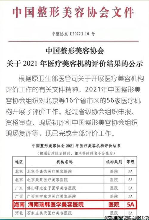 很荣幸,2021年海南瑞韩医疗美容就荣获5A级机构的评定结果!