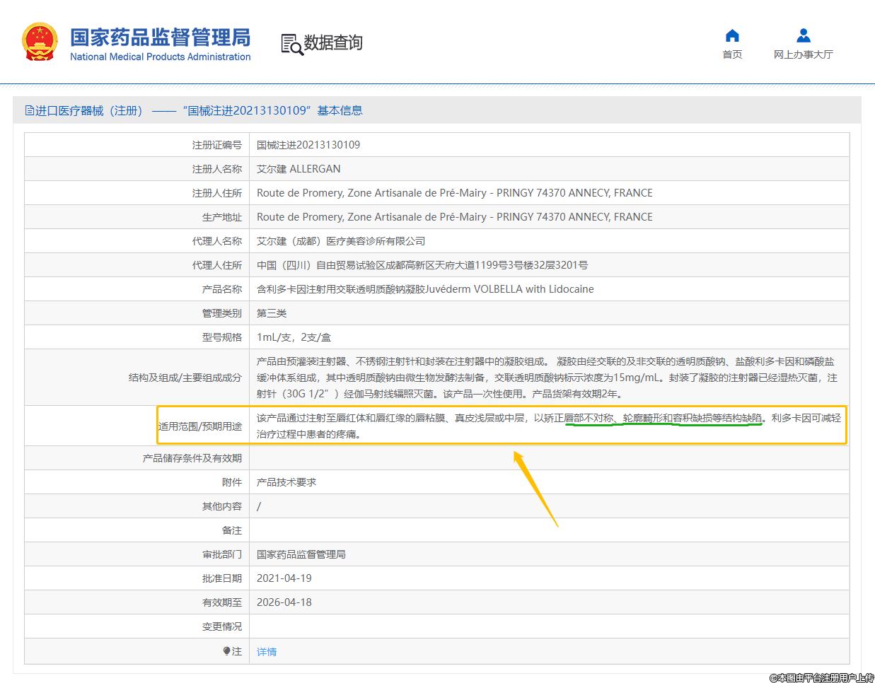 下图是在国家药品监督管理局上关于质颜的基本信息。