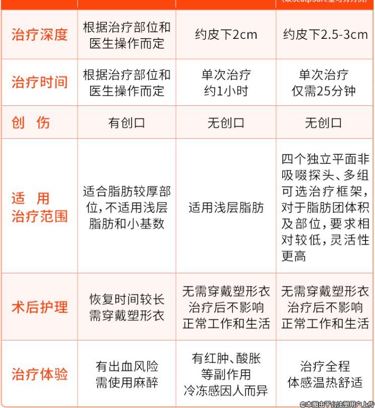 但目前制霸第一梯队的还是吸脂手术、冷冻溶脂、激光热溶脂三大技术。