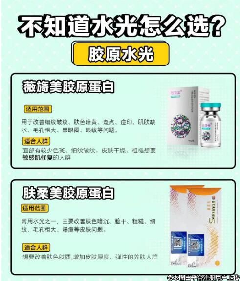 春季皮肤缺水时,建议尝试胶原水光和长效水光,比基础性水光更加契合肌肤,多维度改善皮肤问题,当然不同品牌的水光,功能侧重也有有所差异。