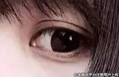 上眼皮褶皱处与眼睑平行一致,内眼角、中部、外眼角宽度大致相同。