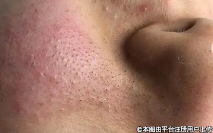 6、显而易见的粗大毛孔(明显且扩大的毛孔,以及突出毛孔的角栓,如同草莓状)。