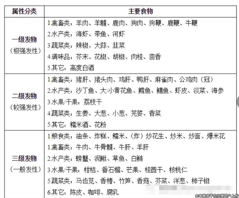 附常见发物一览表: