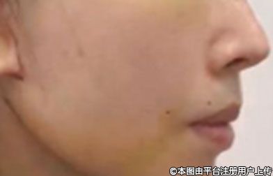 1、面部皮肤松弛:面部皮肤出现轻中度松弛,尤其是下颌线和颈部区域的松弛。