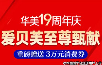 华美19年庆爱贝芙至尊甄献,重磅赠送3万元消费券!