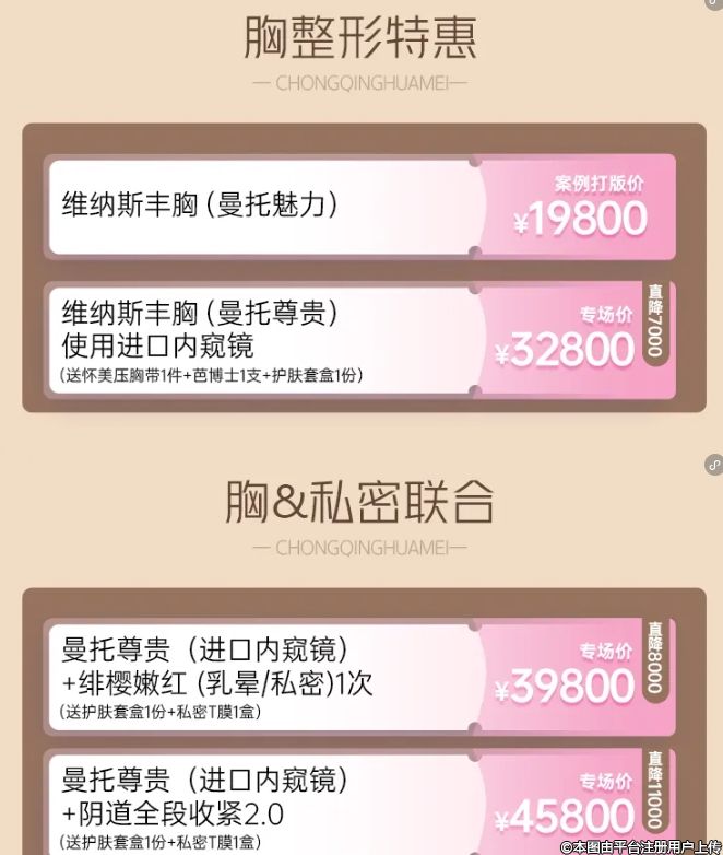 除了本次[粉红丝带公益活动]之外,对于想要健康隆胸或有私密健康需求的求美者,10月20-21日,重庆华美“粉色力量华美绽放”胸&私密专场还将为你带来变美特惠。