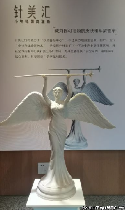 针美汇是一家连锁的,做小微针的轻医美机构,我很喜欢他们家的那个雕像,一个有着翅膀的西方女神托举这一枚针。