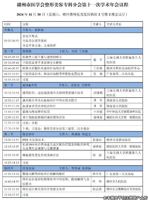 【2024江西省赣州市医学会整形美容分会第十一次学术年会】11月30日即将盛启!