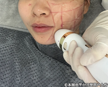 其实来之前我也有做功课了解一些相关知识。第一次接触又怕没有效果心里面还是很忐忑。跟医生多遍交流了一下还是决定就做超声炮。毕竟精致流畅的脸蛋子谁不想要呢? 专业的皮肤检测仪检测皮肤状况,然后进行面部划线(主要是起到一个辅助仪器的作用和避开面部神经)。 仪器上脸有一点点的感觉,都是可以承受的范围 还没有做另外一边脸我就已经迫不及待看效果了。划线的这边脸做完线条轮廓都提升了脂肪也更紧致 还没有做的这边脸还是嘟起勒,肉可见的差距 第二天上班我都觉得整张脸小了一圈。
