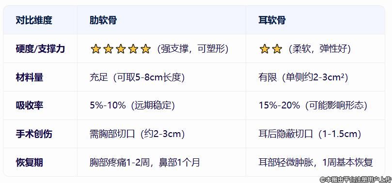 歪鼻整形用肋软骨还是耳软骨?材料对比与适应症