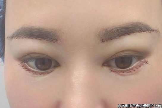 上提上眼睑皮肤和深部肌筋膜后,改变上眼睑皮肤下垂现象,重现双眼皮。