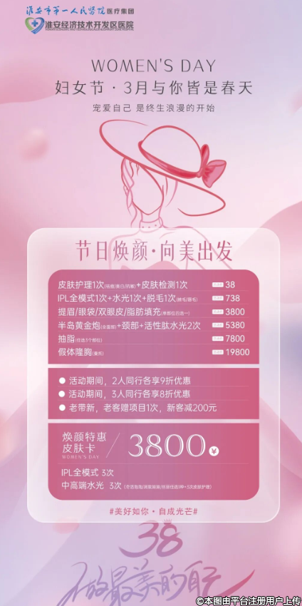 巾帼逢春,美不设限!第116个“三八”国际妇女节如约而至,淮安经济技术开发区医院医疗美容科放大招啦?无隐形消费,全品类医美项目直降到底,力度拉满、福利硬核,每一项优惠都直击人心,专属女神的焕美福利,绝对不容错过!